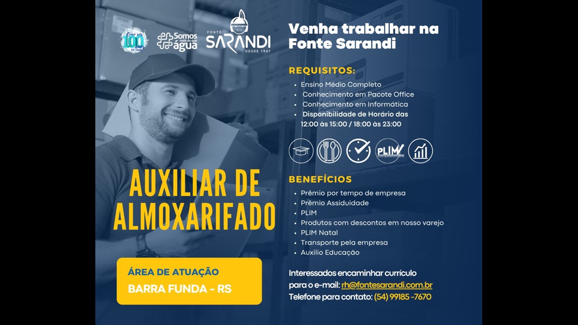 Se você está pronto para se juntar a uma equipe dedicada e fazer parte de um projeto que impacta positivamente a comunidade, candidate-se agora e venha fazer parte da Fonte Sarandi!